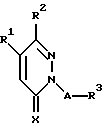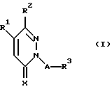 (57) Реферат: Изобретение относится к производным пиридазина общей формулы I, в которой R1 представляет фенильную или пиридильную группу, которая может быть замещена 1-3 заместителями, выбранными из галогена и низших алкоксигрупп; R2 представляет фенильную группу, которая может быть замещена в 4-м положении низшей алкоксигруппой, низшей алкилтиогруппой, низшей алкилсульфинильной или низшей алкилсульфонильной группой и в других положениях 1 или 2 заместителями, выбранными из атомов галогена, низших алкоксильных групп, низших алкилтиогрупп, низших алкилсульфинильных групп и низших алкилсульфонильных групп; 3 представляет атом водорода; низшую алкоксильную группу; галогенированную низшую алкильную группу; низшую циклоалкильную группу; фенильную, пиридильную или фенилоксигруппу, которая может быть замещена 1-3 заместителями, выбранными из атомов галогена, низших алкильных групп, низших алкоксильных групп, карбоксильной группы, низших алкоксикарбонильных групп, нитрогруппы, аминогруппы, низших алкиламиногрупп и низших алкилтиогрупп; незамещенную или замещенную низшей алкильной группой пиперидино, пиперидинильную, пиперазино или морфолиногруппу; незамещенную или замещенную бензильной группой аминокарбонильную группу; низшую алкилкарбонильную группу или незамещенную или замещенную низшей алкилильной группой пиперазинокарбонильную группу; А представляет линейную или разветвленную низшую алкиленовую или низшую алкениленовую группу, имеющую 1-6 атомов углерода; или А может означать одинарную связь, когда R3 представляет низшую циклоалкильную или галогенированную низшую алкильную группу; Х представляет атом кислорода или атом серы; при условии, что исключаются следующие комбинации: R1 и R2 представляют 4-метоксифенильную, Х представляет атом кислорода, А представляет одинарную связь и R3 представляет атом водорода или 2-хлорэтильную группу; или их соли. Указанные соединения являются ингибиторами продуцирования интерлейкина-1- . Кроме того, объектами изобретения являются лекарственное средство, которое является ингибитором продуцирования интерлейкина-1- , лекарственное средство для профилактики и лечения артрита и способ лечения артрита. 4 с. и 4 з.п. ф-лы, 4 табл.