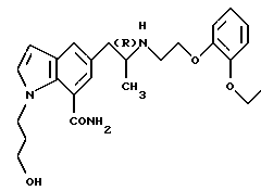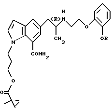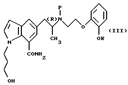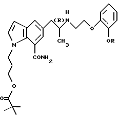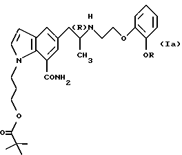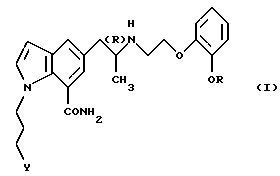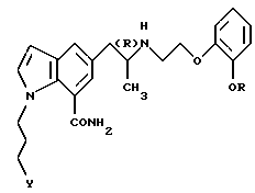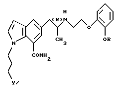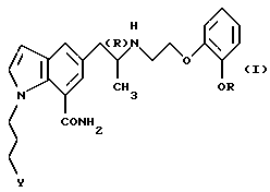 (57) Реферат: Изобретение относится к новым производным индола формулы I ![]() где R обозначает этильную или 2,2,2-трифторэтильную группу; Y – гидрокси- или пивалоилоксигруппа; атом углерода, помеченный символом (R), является атомом углерода в (R)-конфигурации, или его фармацевтически приемлемым солям. Соединения I снижают внутриглазное давление, что позволяет использовать их в фармацевтической композиции, обладающей блокирующей активностью в отношении -адренорецепторов, полезной также для профилактики или лечения глаукомы. 6 с. и 7 з.п.ф-лы, 6 табл.