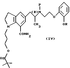 (1) МетодикаКроликам породы “японский белый” (вес около 3 кг; Japan SCL) закапывали в глаза 0,1% раствор гидрохлорида (R)-5-[2-[[2-(2-этоксифенокси)этил]амино] пропил]-1-(3-гидроксипропил)-1Н-индол-7-карбоксамида (гидрохлорид соединения В) (50 мкл) и по истечении времени собирали внутриглазную жидкость. К собранной внутриглазной жидкости (0,1 мл) добавляли (R)-3-хлор-1-(3-гидроксипропил)-5-[2-[[2-[2-(2,2,2-трифторэтокси)фенокси] этил] амино]пропил]-1Н-индол-7-карбоксамид (10 нг) в качестве внутреннего стандарта и к смеси добавляли 0,1 М фосфатный буфер (рН 7,6) и хлорид натрия (около 1 г). Полученную смесь экстрагировали диэтиловым эфиром (5 мл) и диэтиловоэфирный слой концентрировали в токе азота. Остаток растворяли в подвижной фазе (200 мкл), 100 мкл раствора исследовали высокоэффективной жидкостной хроматографией и определяли соединение В в нижеследующих условиях. Результаты приведены в таблице 2. (2) Условия ВЭЖХ Аналитическая колонка: Intersil ODS-3 (4,6 х 250 мм). Подвижная фаза: ацетонитрил/0,1% фосфорная кислота + 2 мМ лаурилсульфат натрия=1/1. Температура колонки 50oС. Скорость потока 1,0 мл/минуту. Флуорометрия: длина волны возбуждения 270 нм, длина волны излучения 435 нм. ПРИМЕР ИСПЫТАНИЯ 3. Определение скорости гидролиза под действием эндогенного фермента. (3) Методика К цельной крови (0,5 мл), взятой у самцов крыс Wistar в качестве гепаринизированной крови, добавляли соответственно сложноэфирное производное (1 мкг) (R)-1-(3-гидроксипропил)-5-[2-[[2-[2-(2,2,2-трифторэтокси)фенокси]этил] амино] пропил] -1Н-индол-7-карбоксамид (соединение А) и внутренний стандарт [(R)-3-хлор-1-(3-гидроксипропил)-5-[2-[[2-[2-(2,2,2-трифторэтокси)фенокси] этил] амино]пропил]-1Н-индол-7-карбоксамид] (1 мкг) и смесь инкубировали при 37oС. Через 15 минут, 30 минут, 1 час и 2 часа к каждой пробе добавляли 0,7 М водный раствор фторида натрия (0,5 мл) в качестве ингибитора эстеразы для прекращения реакции. К смеси добавляли 0,1 М фосфатный буфер (рН 7,6) и хлорид натрия (около 1 г), полученную смесь экстрагировали диэтиловым эфиром (5 мл) и диэтиловоэфирный слой концентрировали в потоке азота. После того как остаток растворяли в подвижной фазе (300 мкл), 10 мкл раствора исследовали высокоэффективной жидкостной хроматографией и определяли испытуемое соединение и соединение А в нижеследующих условиях. Результаты приведены в таблице 3. (2) Условия ВЭЖХ Аналитическая колонка: Intersil ODS-3 (4,6 x 250 мм). Подвижная фаза: ацетонитрил/20 мМ ацетатный буфер=40/60 (pH 5,0). Температура колонки 50oС. Скорость потока 1,0 мл/минуту. Флуорометрия: длина волны возбуждения 270 нм, длина волны излучения 435 нм. ПРИМЕР ИСПЫТАНИЯ 4. Измерение концентрации лекарственного средства во внутриглазной жидкости (2). (1) Методика Кроликам породы “японский белый” (вес около 3 кг; Japan SCL) закапывали в глаза 0,1% раствор (50 мкл) гидрохлорида (R)-3-[7-карбамоил-5-[2-[[2-(2-этоксифенокси)этил] амино] пропил]-1Н-индол-1-ил]пропилпивалата (гидрохлорид соединения С) и по истечении определенного периода времени собирали внутриглазную жидкость. К собранной внутриглазной жидкости (0,1 мл) добавляли (R)-3-хлор-1-(3-гидроксипропил)-5-[2-[[2-[2-(2,2,2-трифторэтокси)фенокси] этил] амино] пропил]-l-lH-индол-7-карбоксамид (10 нг) в качестве внутреннего стандарта, 0,1 М фосфатный буфер (рН 7,6) и хлорид натрия (около 1 г). Полученную смесь экстрагировали диэтиловым эфиром (5 мл) и диэтиловоэфирный слой концентрировали в потоке азота. После того как остаток растворяли в подв