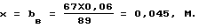 Пример 2. Весы показали массу брутто вагона 89 т. Вагон загружен строительным песком 67 т. Объемная масса для строительного песка =1,4 т/м. Геометрические размеры вагона такие же, как и в первом примере. В табл. 2 допустимая величина горизонтального смещения центра тяжести груза в вагоне для высоты погрузки 2,3 м составит bгр=0,12 м. Разность загрузки боковых сторон вагона определяют из формулы (1)![]() Высота смещенной части сыпучего груза будет равна ![]() Масса несмещенного груза в вагоне равна: Go=67-10,17=56,83 т. Высота погрузки несмещенного груза в вагоне равна: ![]() Высота центра тяжести смещенной части груза в кузове вагона будет равна .