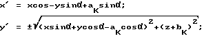 их осей и на расстоянии 2v, согласно изобретению наружная поверхность выполнена в форме нелинейчатого квазигиперболоида вращения, определяемого по формулам