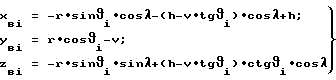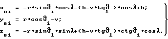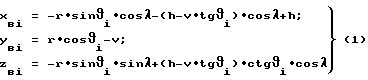 Поверхность валков рассчитывается по формулам![]() где xвi, yвi zвi – координаты текущей точки поверхности валка, мм; r – радиус обрабатываемых изделий, мм; 2 – угол скрещивания осей валков, град; i – углы контакта валков и изделий, град;h, v – наладочные координаты суперфинишного станка (см. фиг.1), мм. Осевой профиль валков определяется координатами (хвi, zвi). Валки имеют идентичный профиль. Наладочные координаты h и v, а также угол скрещивания валков 2 относятся к валковому устройству в целом и задают относительное положение изделий на суперфинишном станке. Их значения определяют, исходя из конструкции станка, а в расчетах профиля валков считают уже известными.