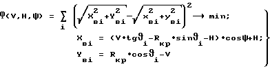 3. Способ по п. 2, отличающийся тем, что величины смещения Н и V при шлифовании валков определяют на основании минимизации целевой функции отклонений изготавливаемой поверхности от заданной![]() где Xвi; Yвi – координаты текущей точки профиля валка при шлифовании, мм. РИСУНКИ