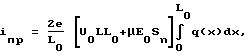 Uo = [(iпр/iнп) – 1] Sп Eo/So, м/с,где Sп – площадь электродов, м2; So = L Lo, м2; – подвижность ионов, B м2/с;Lo – ширина межэлектродного промежутка, м; L – ширина электродов, м. 2. Устройство для определения скорости потока радиоактивного газа и плотности ионизации газовой среды, содержащее измерительный канал в виде открытой с обеих сторон трубы прямоугольного сечения, выполненной из диэлектрического материала, два плоских прямоугольных электрода, введенных в измерительный канал, источник электрического напряжения и блок измерения тока, электрически соединенные с электродами, установленными параллельно на противоположных стенках измерительного канала и образующих проточную ионизационную камеру, отличающееся тем, что снабжено дополнительным идентичным измерительным каналом с герметично закрытыми входным и выходным отверстиями, дополнительными источником электрического напряжения и блоком измерения тока, электрически соединенными с электродами дополнительного измерительного канала, причем длина l электродов выбрана из выражения (10 – 15)Lo l Uo Lo/(Eo ), м,а толщина стенки трубы измерительных каналов выбрана из соотношения Re(Ee) t 0,5 10-3, м,где Re(Ee) – пробег электронов в материале стенки трубы, м; Ee 300 кэВ – энергия электронов распада радионуклидов, присутствующих в качестве примеси в газовом потоке, и электронов комптоновского рассеяния гамма-квантов.