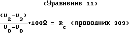 (57) Реферат: Изобретение относится к устройствам для измерения параметров материалов, протекающих через трубопровод. Техническим результатом является повышение точности измерения и минимизация количества проводников, необходимых для измерения. Множество датчиков соединены последовательно, и измеряется напряжение в каждом узле в последовательном соединении датчиков. Переключающее устройство затем открывается, чтобы отключить один из датчиков от напряжения питания, позволяя выполнить измерение сопротивления проводника между температурными датчиками и удаленным преобразователем. Измеренные сопротивления датчиков затем компенсируются измеренным сопротивлением проводника, чтобы получить компенсированное на длину проводника сопротивление для каждого из множества резистивных датчиков. 2 с. и 14 з.п.ф-лы, 6 ил. Изобретение относится к аппаратуре для использования более чем одного резистивного датчика на кориолисовом масс расходомере. Более конкретно это изобретение относится к схеме для использования более чем одного температурного датчика на кориолисовом масс расходомере при минимизации количества проводников, необходимых между элементом расходомера и преобразователем расходомера. ФОРМУЛИРОВКА ПРОБЛЕМЫ Известно использование масс расходомеров с кориолисовым эффектом, чтобы измерять поток массы и другую информацию о материалах, протекающих через трубопровод, как описано в патенте США 4491025, опубликованном Дж. Е. Смитом и др. 1 января 1985 г. и зарегистрирован 31.450 Дж. Е. Смиту 11 февраля 1982 г. Эти расходомеры имеют одну или более напорных труб изогнутой или прямой конфигурации. Каждая конфигурация напорной трубы в кориолисовом масс расходомере имеет набор собственных режимов вибрации, которые могут быть изгибающего, скручивающего, радиального или смешанного типа. Каждая напорная труба возбуждается, чтобы колебаться в резонанс с одним или более из этих собственных режимов. Собственные режимы вибрации колебаний заполненной материалом системы определяются частично общей массой напорных труб и материала в этих напорных трубах. Материал течет к расходомеру из присоединенного трубопровода на входной стороне расходомера. Материал затем направляется через напорную трубу или трубы и выходит из расходомера к трубопроводу, присоединенному к выходной стороне. Возбудитель прикладывает усилие, чтобы заставить колебаться напорную трубу. Когда нет потока через расходомер, все точки вдоль напорной трубы колеблются с одинаковой фазой. Когда материал начинает течь, кориолисовы ускорения заставляют каждую точку вдоль напорной трубы иметь разную фазу относительно другой точки вдоль напорной трубы. Фаза на входной стороне напорной трубы отстает от возбудителя, в то время как фаза на выходной стороне опережает возбудитель. Считывающие датчики помещаются на напорной трубе, чтобы создавать синусоидальные сигналы, представляющие движение напорной трубы. Считывающие датчики могут быть датчиками положения, скорости или ускорения. Разность фаз между двумя сигналами считывающих датчиков пропорциональна скорости потока массы материала, протекающего через напорную трубу или трубы. Поток жидкости через напорную трубу создает лишь небольшую разность фазы порядка нескольких градусов между входным и выходным концами вибрир