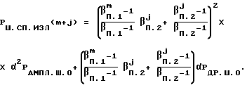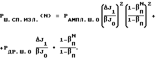 Во втором цикле запоминания значения сигнала и шума последней m-й копии на входе динамического запоминающего устройства, сформированной в первом цикле, рассматриваются как исходные и адекватны соответственно величине сигнала и фонового шума в первом цикле. Можно показать, что в этом случае накопление фоновых, амплитудных и дробовых составляющих шумов подчинено законуPФ.Ш(m+j) = 2mП1 2jП1KPФ,PАМПЛ.Ш.(m+j) = 2mП1 2jП1PАМПЛ.Ш.0,PДР.Ш(m+j) = mП1 jП1PДР.Ш.0.Для интенсивности спонтанного излучения волоконно-оптического усилителя 8, циркулирующего по петле обратной связи, справедливо выражение ![]() При этом на выходе динамического запоминающего устройства появляется дополнительная шумовая составляющая с мощностью ![]() Учитывая, что мощность копий радиосигнала во втором цикле Pm+j = 2mП1 2jП2KPc, j 0,найдем допустимое отношение сигнал/шум ![]() При П.2 = 1 формула (24) принимает вид![]() Принимая в дальнейшем ДУ = 60 дБ и полагая в формуле (25) П.1 = 2 и m = 10, находим![]() Заметим, что в момент завершения первого цикла формирования копий (m = 10 и j = 0) ![]() Частное от деления (26) на (27) определяет ухудшение отношения сигнал/шум во втором цикле. Так, например, при = 0 (отсутствие спонтанного излучения волоконно-оптического усилителя) отношение сигнал/шум остается практически неизменным относительно достигнутого в первом цикле при m = 10.