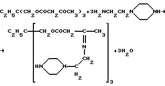 (57) Реферат: Композиция для покрытий, герметиков или клеев, которая может отверждаться при температуре окружающей среды 40oС или ниже, содержит эпоксидную смолу и отвердитель, содержащий в среднем более двух гетероциклических вторичных аминогрупп на молекулу, причем композиция содержит от 0,5 до 2,0 гетероциклических вторичных аминогрупп на эпоксидную группу. 16 з.п. ф-лы, 4 табл. Это изобретение касается отверждаемых при температуре окружающей среды композиций, содержащих эпоксидкую смолу и отвердитель с функциональными аминогруппами, применяемых в качестве покрытий, клеев или герметиков, и способа отверждения этих композиций. Уровень техники Применение гетероциклических вторичных аминов, таких как пиперидин, пирролидин, аминоэтилпиперазин или анабазин, в качестве отвердителей рассматривается в руководстве Lee and Nevill, “Handbook of Epoxy Resins”, published by McGraw-Hill, 1967. Они обычно используются в малых количествах для ускорения главным образом самоконденсации эпоксидных групп. Например, пиперидин обычно используют в количестве 5-7% от веса эпоксидной смолы, такой как диглицидиловый эфир бисфенола А (ДГЭБА). В статье Форостян и др. Пластические массы, 1965(1), 16-17, описано, что 2,3-бипиперидин обеспечивает отверждение ДГЭБА за 2 часа при 80oС. В патенте США 4581454 описаны аддукты аминогидрокарбилпиперазинов и мочевины, которые используются в качестве отвердителей для эпоксидных смол, особенно при реакционном литье под давлением. Сущность изобретения Согласно одному аспекту настоящего изобретения способ формирования слоя отвержденной эпоксидной смолы на подложке включает в себя покрытие подложки композицией, содержащей эпоксидную смолу и отвердитель с функциональными аминогруппами, и отверждение нанесенного таким образом покрытия при температуре окружающей среды, и он отличается тем, что отвердитель представляет собой вещество, содержащее по крайней мере две гетероциклические вторичные аминогруппы. Гетероциклической вторичной аминогруппой заявители называют вторичную аминогруппу, в которой атом аминного азота образует часть гетероциклического кольца. Это изобретение также предусматривает применение соединения, содержащего по крайней мере две гетероциклические вторичные аминогруппы, в качестве отвердителя для эпоксидной смолы, отличается тем, что эпоксидная смола и соединение, содержащее по крайней мере две гетероциклические вторичные аминогруппы, наносят вместе в качестве покрытия на подложку и оставляют для отверждения на подложке при температуре окружающей среды. Температура окружающей среды, при которой отверждается покрытие, обычно ниже 40oС и часто ниже 25oС, и она может быть ниже 10oС или даже ниже 0oС, например вплоть до -20oС. При этих низких температурах композиции эпоксидной смолы этого изобретения отверждаются быстрее, чем известные композиции эпоксидных смол, такие как композиции, в которых в качестве отвердителя используются первичные диамины. Заявители считают, что вначале отверждение эпоксидной смолы в основном происходит посредством реакции эпоксида с амином, а не посредством самоконденсации эпоксидных групп. Эпоксидная смола в композиции в общем может быть любой из эпоксидных смол, описанных в упомянутом выше руководстве Lee and Nevill, предпочтительно может быть эпоксидной смолой глицидилового типа, содержащей групп