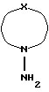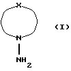 (57) Реферат: Изобретение относится к отверждающим агентам для эпоксидных смол – простых и сложных глицидиловых эфиров и смол глицидиламинного типа. Отверждающим агентом формулы (I) ![]() являются соединения: 1-амино-пиперидин, 1-аминогомопиперидин, 1-аминопиперазин, 1-амино-N’-метилпиперазин, N,N’-диаминопиперазин, N-аминоморфолин, N-аминоазиридин, N-аминоазациклоундецен, N-аминотиоморфолин и 1-амино-4-октилпиперазин или их солей. Второй вариант изобретения предусматривает наряду с соединением формулы (I) или его соли использование 0,8-3,0 моля воды на 1 моль отверждающего агента. Способ отверждения эпоксидной смолы заключается в смешении эпоксидной смолы, отверждающего агента по п.1 и воды с последующим отверждением при 0 – 20oС. Отверждающий агент по изобретению позволяет отверждать эпоксидные смолы при низких температурах, а при добавлении определенного количества воды скорость отверждения увеличивается. 3 с. п. ф-лы, 4 табл. Настоящее изобретение относится к отверждающему агенту для эпоксидной смолы. Эпоксидная смола находит широкое применение в качестве герметизирующего материала, покрывающей композиции, клея и т.д. в различных областях техники, таких как электричество, электроника и гражданское сооружение и строительство, поскольку отвержденное изделие из эпоксидной смолы обладает прекрасными электроизолирующими свойствами, влагозащитными свойствами, теплостойкостью, устойчивостью при пайке, химической устойчивостью, износоустойчивостью, адгезивными свойствами и механической прочностью (Henry Lee, Kris Neville. Handbook of Epoxi Resins, Published 21.03.1967). Обычно отверждение эпоксидной смолы осуществляют путем добавления к эпоксидной смоле отверждающего агента, после чего следует нагревание. Типичными примерами отверждающих агентов являются диэтилентриамин, триэтилентетраамин, изофорондиамин, диаминодифенилметан, диаминодифенилсульфон, полиамиды, дициандиамид, гексагидрофталевый ангидрид, метилтетрагидрофталевый ангидрид, ангидрид метилнорборнен-2,3-дикарбоновой кислоты, фенольная смола новолачного типа, третичные амины, имидазолы и аминный комплекс трифторида бора. Из этих отверждающих агентов агенты, которые могут отверждать эпоксидную смолу при комнатной температуре, представляют собой аминные отверждающие агенты, такие как диэтилентриамин, триэтилентетраамин, полиамиды и третичные амины. Однако в случае этих отверждающих агентов для отверждения требуется длительное время от четырех до семи дней. Для других отверждающих агентов отверждение при комнатной температуре затруднено, и для них обычно требуется температура отверждения от 80 до 200oС и время отверждения от 0,5 до 6 часов. Между тем, в области гражданского сооружения и строительства при строительстве на открытом воздухе обычно используется клей на основе эпоксидной смолы. Однако с обычным отверждающим агентом очень трудно провести отверждение эпоксидной смолы без нагревания, как это описано ранее. Даже при использовании отверждающего агента, способного к отверждению, это занимает исключительно длительное время, а именно от четырех до семи дней. В особенности при выполнении работ в зимний период, когда наружная температура часто равна 10oС и ниже и большое значение имеет инициирование или промотирование реакции отверждения путем нагревания (патент США 4910270, Maekawa и др., оп