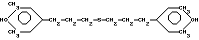 Эмпирическая формула: С34Н54О2SСтруктурная формула: ![]() Молекулярная масса: 526,86. Температура плавления: 71-75oС. Продукт выпускается в опытно-промышленном масштабе под маркой “СО-3” (ТУ 88-15326-01-90). Указанные отличительные существенные признаки являются новыми, так как их использование в предложенной совокупности, количественных и качественных соотношениях в известном уровне техники, аналогах и прототипе не обнаружены, что позволяет характеризовать предложенное эпоксидное связующее для армированных пластиков соответствием критерию “новизна”. Единая совокупность новых существенных признаков с общими известными существенными признаками позволяет решить поставленную задачу и достичь новый технический результат, что характеризует предложенное эпоксидное связующее существенными отличиями от известного уровня техники, аналогов и прототипа. Новое эпоксидное связующее является результатом научно-экспериментальных исследований и творческого вклада, получено без использования каких-либо стандартных разработок, инструкций или рекомендаций в данной области техники переработки пластмасс, основано на использовании новой концепции его получения, неочевидно для специалистов, характеризуется соответствием критерию “изобретательский уровень”. Количественные пределы ингредиентов эпоксидного связующего устанавливали исходя из условий: – получения эластичных, нелипких препрегов с длительной жизнеспособностью; – обеспечения максимальных прочностных характеристик, в том числе при 200oС и выше; – минимального водопоглощения. Бис-[3-(3.5-ди-трет-бутил-4-оксифенил)пропил] сульфид (продукт СО-3) в заявляемом связующем выполняет функцию не только ускорителя процесса отверждения смолы ЭТФ отвердителем – анилинофенолоформальдегидной смолой, но одновременно играет роль структурообразователя, создавая (за счет химического взаимодействия со смолами и каучуком) более упорядоченную и менее дефектную структуру сетчатого полимера, что, в свою очередь, обеспечивает улучшение физико-механических, теплофизических и других свойств пластиков на основе данного связующего. Концевые карбоксильные группы бутадиен-акрилонитрильного каучука при нагреве взаимодействуют с эпоксидными группами смолы ЭТФ. Это позволяет в сочетании с ускорителем (структурообразователем) – продуктом СО-3 – обеспечить высокую деформационную теплостойкость эпоксиполимера и существенно снизить (в сравнении с аналогом и прототипом) водопоглощение пластиков. В качестве растворителя выбран дешевый, доступный и легко летучий растворитель – спиртоацетоновая смесь при массовом соотношении спирта и ацетона 1: 1. Исходя из условий хорошей растворимости всех компонентов эпоксидного связующего, из спиртов выбраны наиболее доступные и экологически безопасные – этиловый и изопропиловый. Способ получения патентуемого эпоксидного связующего, препрегов и пластиков на его основе осуществляется следующим образом: А. Приготовление эпоксидного связующего Связующее в больших (50-400 кг) количествах готовят в смесителе с мешалкой, люком для загрузки и нижним спускным краном. Небольшое количество связующего готовится в любой подходящей емкости с перемешиванием вручную. В целях ускорения процесса растворения анилинофенолоформальдегидной смолы ее предварительно измельч