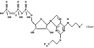 (57) Реферат: Описана фармацевтическая композиция, содержащая нуклеотидный аналог и одну или несколько стеклообразующих добавок, выбранных из сорбита, сахарозы, лактозы или трегалозы, обладающая повышенной стабильностью. 2 с. и 2 з.п. ф-лы, 2 табл. Данное изобретение обеспечивает фармацевтическую композицию, пригодную для лиофилизации, и способ приготовления этой композиции. Предпосылки изобретения Лиофилизация представляет собой хорошо известный способ, используемый для приготовления стабильных к хранению композиций фармацевтических соединений, которые в противном случае страдают от деградации при хранении в присутствии воды, например, вследствие диспропорционирования и/или гидролиза. Примеры таких фармацевтических соединений включают в себя нуклеотиды. Проблема заключается в том, что лиофилизация не удаляет всю воду из композиции, содержащей такое фармацевтическое соединение. Вода, которая остается после лиофилизации, может дестабилизировать эту композицию во время хранения. Таким образом, существует потребность в композициях фармацевтических соединений, таких как нуклеотиды, которые после лиофилизации являются стабильными при долгосрочном хранении. Сущность изобретения В соответствии с данным изобретением обеспечена фармацевтическая композиция, содержащая нуклеотидные аналоги и одну или несколько стеклообразующих добавок. Нуклеотид представляет собой соединение, содержащее пуриновое или пиримидиновое основание, присоединенное к пентосахару, причем одна или несколько гидроксигрупп этого пентосахара являются фосфорилированными моно- или полифосфатом. Нуклеотидный аналог для применения в данном изобретении является в общем соединением, в котором одна или более из трех составляющих, из которых состоит нуклеотид, являются модифицированными, например, присоединением одного или более заместителей и/или заменой одного или нескольких структурообразующих атомов. Нуклеотид, используемый в этом изобретении, представляет собой предпочтительно соединение, описанное в WO 94/18216, которое является соединением формулы I: ![]() где R1 и R2 независимо обозначают водород или галоген, R3 и R4 независимо обозначают фенил или C1-6-алкил, необязательно замещенный одним или несколькими заместителями, выбранными из OR5, C1-6-алкилтио, NR6R6, фенила, COOR8 и галогена, R5, R6, R7 и R8 независимо обозначают водород или C1-6-алкил и Х обозначает кислотную часть молекулы, или его фармацевтически приемлемую соль. Соединения формулы I могут существовать в таутомерной, энантиомерной и диастереомерной формах, все из которых включены в объем этого изобретения. Фармацевтически приемлемые соли соединений формулы I включают в себя соли щелочных металлов, например, соли натрия и калия; соли щелочноземельных металлов, например, соли кальция и магния; соли элементов группы III, например, соли алюминия; и соли аммония; соли с подходящими органическими основаниями, например соли с гидроксиламином; низшими алкиламинами, например метиламином или этиламином; с замещенными низшими алкиламинами, например, гидроксизамещенными алкиламинами; или с моноциклическими азотсодержащими гетероциклическими соединениями, например пиперидином или глорфолином; и соли с аминокислотами, например с аргинином, лизином и т.д. или их N-алкилпроизводным; или с аминосахаром, например 