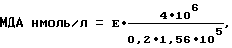 Согласно заявляемому способу в венозной крови пациента определено содержание МДА, которое составило 8,2 нмоль/мл.