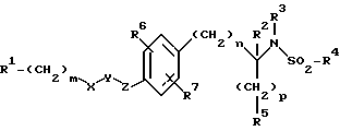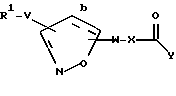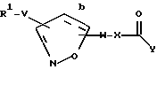 ![]() или их фармацевтически приемлемые соли, где b – одинарная связь; R1 представляет радикал формулы ![]() Z обозначает O; R2 выбирается из H и C2 – C10 алкоксикарбонила; U представляет одинарную связь (т.е. U не присутствует); V представляет фенил; W представляет одинарную связь (т.е. W не присутствует) X представляет -(C1 – C7 алкил)-, замещенный 0 – 3 группами R4; Y выбирают из гидрокси или C1 – C10 алкокси; R4 выбирают из H или -N(R12)R13; R12 и R13 независимо являются H, C1 – C10 алкилкарбонилом, C1 – C10 алкилсульфонилом, фенил(C1 – C10 алкил)сульфонилом или фенил(C1 – C10 алкокси)карбонилом; R14 выбирается из H или C1 – C10 алкоксикарбонила; R15 представляет H; n = 0 – 4; r = 0 – 3. 2. Соединение по п.1 формулы II ![]() где R1 представляет радикал формулы ![]() R2 выбирается из H и C2 – C10 алкоксикарбонила; значения R14, X, V, Y, n и r указаны в п.1. 3. Соединение по п.1, где R1 представляет радикал формулы ![]() n = 1 или 2; X является (C1 – C2)-алкилом-, замещенным 0 – 2 R4; R4 является -NR12R13; R12 является H, C1 – C4 алкилкарбонилом, C1 – C4 алкилсульфонилом, фенил(C1 – C10)алкилсульфонилом или фенил(C1 – C10 алкокси)карбонилом; R13 является H. 4. Соединение по п.1 или его фармацевтически приемлемая соль, представляющее собой соединение, следующие соединения: 5(R,S)-3-[[4-(2-пиперидин-4-ил)этоксифенил]изоксазолин-5-ил]уксусная кислота; 5(R, S)-N-(бутансульфонил)-L-{ 3-[4-(2-пиперидин-4-ил)этоксифенил] изоксазолин-5-ил}глицин; 5(R,S)-N-( -толуолсульфонил)-L-{3-[4-(2-пиперидин-4-ил)этоксифенил]изоксазолин-5-ил}глицин;5(R, S)-N-[(бензилокси)карбонил)-L-{ 3-[4-(2-пиперидин-4-ил)этоксифенил] изоксазолин-5-ил}глицин; 5(R, S)-N-(пентаноил)-L-{ 3-[4-(2-пиперидин-4-ил)этоксифенил] изоксазолин-5-ил}глицин; 5(R,S)-[4-(пиперидин-4-ил)метоксифенил]изоксазолин-5-ил}пропановая кислота; 2(R,S)-5(R,S)-N-(бутансульфонил)амино-{3-[4-(пиперидин-4-ил)метоксифенил]изоксазолин-5-ил}пропановая кислота; 2(R,S)-5(R,S)-N-( -толуолсульфонил)амино{3-[4-(пиперидин-4-ил)метоксифенил]изоксазолин-5-ил}пропановая кислота;2(R, S)-5(R, S)-N-[(бензилокси)карбонил] амино-{ 3-[4-(пиперидин-4-ил)метоксифенил]изоксазолин-5-ил}пропановая кислота; 2(R, S)-5(R, S)-N-(пентаноил)амино-{ 3-[4-(пиперидин-4-ил)метоксифенил] изоксазолин-5-ил}пропановая кислота; 5. Изоксазолины или изоксазолы формулы I ![]() или его фармацевтически приемлемая соль, где b – одинарная или двойная связь; R1 представляет R2(R3)N(R2N=)C-, R2a(R3)N(CH2)qZ-, R2(R3)N(R2N=)CN(R2) или ![]() Z выбирается из связи, O или S; R2 и R3 независимо выбирается из H, C1 – C10 алкила, C3 – C11 циклоалкила, C7 – C11 арилалкила, C1 – C10 алкоксикарбонила или арил(C1 – C10алкокси)карбонила; R2a выбирается из R2 или R2(R3)N(R2N=)C-; U выбирается из одинарной связи и фенила; V выбирается из одинарной связи; C1 – C7 алкила; фенила и (фенил)-Q, указанный фенил замещен 0 – 2 группами, независимо выбранными из R6 или R7; или -(пиридил)-Q; Q выбирается из одинарной связи, -CH2-, -OCH2-; W представляет -(C(R4)2)nC(=O)N(R5a)-; X представляет -C(R4)(R8)-CHR4a-; R4 представляет водород; R4a представляет водород или -N(R16)R17; Y выбирается из гидрокси или C1 – C10 алкилокси; R8 выбирается из R6, C1 – C10 алкила, замещенного 0 – 3 R6, C2 – C10 алкинила, замещенного 0 – 3 R6, фенила или пиридила; R6 выбирается из водорода, C1 – C10 алкила, галогена, -N(R12)R13, C1 – C10 алкокси, CO2R5, C(= O)R5a, CONR5R5a, NR5aSO2NR5R5a, NR5aSO2R5, SR5a, SiMe3, фенила, пирролидинила или пиридила; R7 выбирается из H, C1 – C4 алкила, C1 – C10 алкокси и галогена; R5 выбирается из H, C1 – C8 алкила, C3 – C11 циклоалкила, фенила, фенилэтила; R5a выбирается из водорода, гидрокси, C1 – C8 алкила, фенила, фенилэтила, адамантилметила или C1 – C10 алкила, замещенно