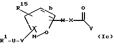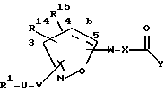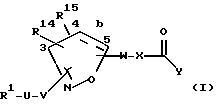(57) Реферат: Изобретение касается новых изоксазолинов и изоксазолов формулы I, где R1, R14, R15, U, V, W, X, Y, b имеют значения, указанные в формуле изобретения, которые полезны в качестве антагонистов гликопротеинового рецептора фибриногена IIb/IIIa тромбоцитов, фармацевтических композиций, содержащих такие соединения, способа подавления агрегации тромбоцитов на основе этих соединений в качестве тромболитиков. 6 с. и 18 з.п.ф-лы, 16 табл.