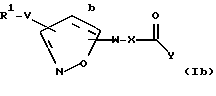 Соединения формулы I, у которых b – это двойная связь, можно получить используя один из путей, указанных на схеме IX (см. в конце описания). Бромирование с последующим дегидробромированием соответственно замещенного метил 3- (цианофенил)изоксазолин-5-илацетата, полученного как описано выше, используя метод Elkasaby & Salem (Indian J. Chem., 1980, 1913, 571-575), дает соответствующее промежуточное соединение изоксазола. Или же этот промежуточный продукт может быть получен 1,3-диполярным циклоприсоединением оксида цианофенилнитрила (полученного из соответствующего хлороксима, как описано на схеме I) к соответствующему алкину с образованием непосредственно изоксазола. Гидролиз эфира традиционными методами, известными специалистам в области органического синтеза, дает уксусные кислоты. Соединение образующихся кислот с соответственно замещенным альфа- или бета- аминоэфиром, используя стандартные реактивы, такие как TBTU, дает нитрил-амид. Затем нитрил превращают в имидин через имидат или тиоимидат при стандартных условиях с образованием эфиров пролекарств. Омыление приводит к образованию кислот.