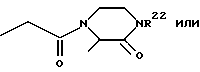 В таблице 16 представлена антитромбоцитарная активность характерных соединений настоящего изобретения. Указанные соединения проверяли на их способность подавлять агрегацию тромбоцитов (используя обогащенную тромбоцитами плазму (ПОТ)), показаны значения IC50 (концентрации антагониста, при которых агрегация тромбоцитов подавляется на 50% относительно контроля без антагониста). В таблице 16 значения IC50 обозначены следующим образом:+++ = IC50 < 10 мкМ, ++ = IC50 10-50 мкМ, + = IC50 50-100 мкМ. Дозы и технология приготовления лекарственных форм Соединения настоящего изобретения могут вводиться в виде таких оральных лекарственных форм, как таблетки, капсулы (каждая из которых включает формы с непрерывным или ограниченным во времени высвобождением активного компонента), драже, порошки, гранулы, эликсиры, настойки, суспензии, сиропы и эмульсии. Они также могут вводиться внутривенно (шарик или вливание), внутрибрюшинно, подкожно или внутримышечно, используя лекарственные формы, известные специалистам в области фармакологии. Эффективное, но нетоксичное количество желаемого соединения может быть использовано как противоагрегационный лекарственный препарат. Соединения этого изобретения могут вводиться любыми способами, которые создают контакт активного вещества с местом действия, гликопротеином IIb/IIIa (ГПIIb/IIIa), в теле млекопитающих. Они могут вводиться любыми традиционными способами, подходящими для применения вместе с фармацевтическими препаратами, либо в виде индивидуальных лекарственных препаратов, либо в сочетании с лекарственными препаратами, такими как второй антитромбоцитарный препарат, а именно аспирин или тиклопидин, являющимися агонист-специфичными. Они могут вводиться сами по себе, но в основном вводятся вместе с фармацевтическим носителем, выбранным на основании выбранного способа введения и общепринятой фармацевтической практики. Схема приема соединений настоящего изобретения, конечно, будет варьировать в зависимости от известных факторов, таких как фармакодинамические характеристики определенного препарата и его форма и путь введения; вид, возраст, пол, состояние здоровья, медицинские условия и вес реципиента; природа и степень выраженности симптомов; разновидность сопутствующего лечения; частота лечения; путь введения, работа почек и печени больного и желаемый эффект. Обычно опытный терапевт или ветеринар могут легко определить и прописать эффективное количество требуемого для предупреждения, противодействия или остановки развития заболевания. В качестве общего руководства ежедневная оральная доза каждого активного компонента при применении для достижения указанных эффектов будет варьировать от 0,001 до 1000 мг/кг веса тела, предпочтительно от 0,01 до 100 мг/кг веса тела в день и наиболее предпочтительно от примерно 1,0 до 20 мг/кг/день. Наиболее предпочтительные внутривенные дозы будут находиться в интервале от примерно 1 до примерно 10 мг/кг/мин при постоянной скорости вливания. Было бы лучше, если соединение настоящего изобретения вводилось бы в виде однократной ежедневной дозы или общая ежедневная доза вводилась бы в виде нескольких раздельных доз два, три или четыре раза в день. Соединения настоящего изобретения могут вводиться через нос посредством соответствующих интраназальных носителей или трансдермальными п