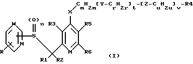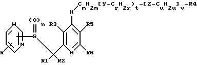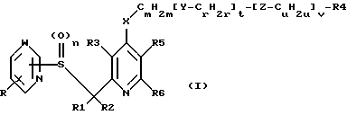Е1. 4-(3-хлорпропилтио)-3-метил-2-[(2-пиримидинилтио)метил]пиридинПо методике, описанной в примере А3, взаимодействием с 2-меркаптопиримидином получают указанное в заголовке соединение; tпл 83-85oC; бесцветный порошок; выход 73% от теории. Промышленная применимость Исключительно высокая эффективность соединений формулы I и их солей по отношению к бактериям Helicobacter позволяет применять их в медицине в качестве действующих веществ для лечения болезней, возбудителями которых являются бактерии Helicobacter. Другим предметом изобретения в соответствии с этим является способ лечения млекопитающих, прежде всего человека, страдающих заболеваниями, обусловленными бактериями Helicobacter. Способ отличается тем, что заболевшему пациенту вводят терапевтически эффективное и фармакологически приемлемое количество одного или нескольких соединений формулы I и/или их фармакологически приемлемых солей. Предметом изобретения, кроме того, являются соединения формулы I и их фармакологически приемлемые соли для применения при лечении болезней, возбудителями которых являются бактерии Helicobacter. Изобретение включает также применение соединений формулы I и их фармакологически приемлемых солей при изготовлении лекарственных средств, предназначенных для борьбы против таких болезней, которые обусловлены бактериями Helicobacter. Еще одним предметом изобретения являются лекарственные средства для борьбы с бактериями Helicobacter, содержащие одно или несколько соединений общей формулы I и/или их фармакологически приемлемые соли. Из штаммов бактерий Helicobacter, по отношению к которым соединения формулы I отличаются эффективностью, следует назвать прежде всего штамм Helicobacter pylori. Лекарственные средства изготавливают с помощью известных, обычных для специалиста в данной области техники способов. В качестве лекарственных средств фармакологически эффективные соединения формулы I и их соли (также являющиеся действующими веществами) применяют либо индивидуально, либо предпочтительно в комбинации с соответствующими фармацевтическими вспомогательными веществами, например, в виде таблеток, драже, капсул, эмульсий, суспензий, гелей или растворов, причем содержание действующих веществ предпочтительно составляет от 0,1 до 95%. Какие именно вспомогательные вещества для требуемых лекарственных комбинаций следует выбрать, решает сам специалист на основе своих знаний и опыта. Наряду с растворителями, гелеобразователями, вспомогательными веществами для таблеток и другими носителями действующих веществ могут использоваться также, например, антиоксиданты, диспергаторы, эмульгаторы, антивспениватели, корригенты вкуса, консерванты, агенты растворимости, красители или промоторы, улучшающие проницаемость, и комплексообразователи (в частности, циклодекстрины). Действующие вещества могут назначаться, например, для парентерального (в частности, внутривенного) или прежде всего для орального введения. Как правило, в медицине для достижения необходимого эффекта действующие вещества назначают в суточной дозировке порядка 0,2-50, предпочтительно 1-30 мг/кг веса тела, при необходимости разбивая суточную дозу на несколько, предпочтительно 2-6, разовых доз. В этой связи в качестве существенного для настоящего изобретения аспекта следует особо подчеркнуть, что соединения формулы I, в которых n означ