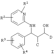 (57) Реферат: Изобретение относится к новым производным 2-аминопиридинов ф-лы (1), где С обозначает незамещенные или замещенные фенил, пиридил, тиенил, тиазолил, хинолил, хиноксалин-2-ил или их бензоаннелированные производные; D – незамещенные или замещенные фенил, пиридил, тиенил, пиримидил, индолил, тиазолил, имидазолил, хинолил, триазолил, оксазолил, изоксазолил или их бензоаннелированные производные при условии, что С и D не имеют одновременно следующие значения: С – фенил и D – фенил, С – фенил и D – пиридил, С – пиридил и D – фенил, С – пиридил и D – пиридил; R1 – R4 – водород, NO2 или NH2. Соединения ф-лы (1) проявляют гиполипидемическую активность и могут быть использованы в медицине для лечения нарушений липидного обмена. 3 с. и 1 з. п. ф-лы, 1 табл.