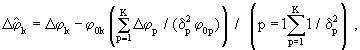 где – отклонение полной фазы выходного сигнала, вырабатываемого k-м стабилизируемым генератором за временной интервал измерений, относительно ее номинального значения, обусловленное как собственной нестабильностью частоты выходного сигнала k-го стабилизируемого генератора, так и нестабильностью временного интервала измерений;