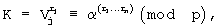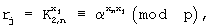 путем преобразования в конечном поле Fp своего случайного числа хn и первых значений К1,j компьютеров группы