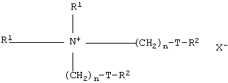 (57) Реферат: Изобретение относится к стабильности четвертичных аммониевых соединений, в частности к сохранению в стабильном состоянии четвертичных аммониевых соединений, содержащих, по меньшей мере, одну сложноэфирную группу и находящихся либо в виде сырьевого материала, либо в виде раствора в подходящем растворителе. Стабилизированная композиция содержит четвертичное аммониевое соединение формулы (А), где каждая группа R1 независимо выбрана из С1-4 алкила, гидроксиалкила или С2-4 алкенила; и каждая группа R2 независимо выбрана из C8-28 алкила или алкенила; Х является любым подходящим противоионом; Т представляет собой группу -О-С(О)- или -С(O)-O-; n – целое число от 1 до 5 или 0; и 0,05 – 10 вес.% одного или нескольких стабилизирующих агентов, которые являются сильными донорами протонов при образовании водородной связи и выбираются из одной или нескольких групп, включающих а) мочевину, b) производное мочевины и/или с) первичные или вторичные амиды, при этом композиция находится в жидкой, расплавленной, полутвердой или твердой форме и содержит менее 10 вес.% воды. 3 с. и. 2 з.п. ф-лы.