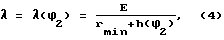 Из работы [3, 4] следует, что угловая скорость вращения кулисы (кулачкового вала обкатываемого насоса) определяется по формуле![]() где – безразмерный кинематический параметр устройства, определяемый из следующего выражения:![]() где r – длина кривошипа кулисного механизма. Как следует из фиг.2, длина r – переменная величина, зависящая от координаты 2 и закона изменения профиля программирующего кулачка 11:r = r( 2) = rmin+h( 2), (3)где h( 2) – закон подъема толкателя в зависимости от угла поворота 2. Отсюда:![]() т. е. при повороте кривошипа на угол от 0 до значение будет уменьшаться, а скорость (1) будет возрастать, затем на угле поворота от до 2 значение увеличивается, а скорость снижается. Такой процесс повторяется в каждом цикле.