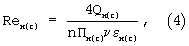 и число Рейнольдса наливных (сливных) дроссельных окон Reн(c) по выражению
