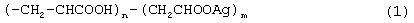 причем содержание серебра составляет 0,0003-0,0009 г-ат, а содержание карбоксильных групп составляет 0,0219-0,0213 г-экв на 1 г полимера.