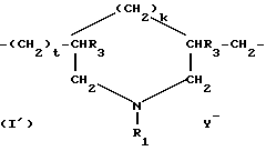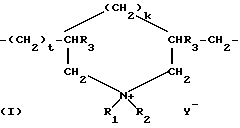 ![]() ![]() где k и t равны 0 или 1; сумма (k + t) равна 1; R3 означает атом водорода или метильный радикал; R1 и R2, независимо друг от друга, означают алкил с 1 – 22 атомами углерода, гидроксиалкил, в котором алкил содержит предпочтительно 1 – 5 атомов углерода, низший амидоалкил с 1 – 5 атомами углерода, или R1 и R2 вместе с атомом азота, с которым они связаны, могут означать гетероциклические группы, такие как пиперидинил или морфолинил; Y– означает анион, такой как бром-анион, хлор-анион, ацетат, борат, цитрат, тартрат, бисульфат, бисульфит, сульфат, фосфат. 2. Композиция по п.1, отличающаяся тем, что R1 и R2 независимо друг от друга означают метил или этил, R3 означает атом водорода. 3. Композиция по любому из пп.1 и 2, отличающаяся тем, что вышеуказанный катионный полимер выбирают среди гомополимеров диметилдиаллиламмонийхлорида. 4. Композиция по любому из пп.1 – 3, отличающаяся тем, что анионные поверхностно-активные вещества алкилэфирсульфатного типа представляют собой соли алкилэфирсульфатов, алкиламидоэфирсульфатов, алкиларилэфирсульфатов; алкилэфирсульфосукцинаты, причем алкильный или ацильный радикал всех этих различных соединений содержит предпочтительно 8 – 24 атома углерода, а арильный радикал предпочтительно означает фенил или бензил. 5. Композиция по любому из пп.1 – 4, отличающаяся тем, что анионное поверхностно-активное вещество алкилэфирсульфатиного типа выбирают среди солей алкилэфирсульфатов с 10 – 14 атомами углерода и более предпочтительно среди таковых с 12 – 14 атомами углерода. 6. Композиция по любому из пп.1 – 5, отличающаяся тем, что амфотерным поверхностно-активным является вещество алкилбетаионового типа с 10 – 14 атомами углерода в алкильной части. 7. Композиция по любому из пп.1 – 6, отличающаяся тем, что аминированный силикон выбирают из а) полисилоксанов отвечающих формуле (IV) ![]() где x’ и y’ означают целые числа, зависящие от молекулярной массы, обычно такие, что вышеуказанная среднечисловая молекулярная масса составляет примерно от 5000 до 500000; (б) аминированных силиконов, отвечающих формуле V R’aG3-a-Si(OSiG2)n-(OSiGbR’2-b)m-O-SiG3-a-R’a, где G означает атом водорода или фенил, гидроксил или алкил с 1 – 8 атомами углерода, например, метил; a означает число 0 или целое число от 1 до 3, в особенности 0; b означает 0 или 1, и в особенности 1; m и n означают такие числа, чтобы сумма (n + m) могла изменяться особенно от 1 до 2000, и в особенности от 50 до 150, причем n может означать число от 0 до 1999, и особенно от 49 до 149, а m может означать число от 1 до 2000, и особенно от 1 до 10; R’ означает одновалентный радикал формулы -CgH2gL, в котором g означает число от 2 до 8 и L означает кватернизованную или некватернизованную аминогруппу, выбираемую среди следующих групп: -NR” -CH2-CH2-N’ (R”)2; -N(R”)2; -N(R”)2; -N+ (R”)3A–; NH+(R”)2A–; -NH2+(R”)A–; -N(R”) – CH2-CH2-N+R”H2A–, в которых R” может означать водород, фенил, бензил или одновалентный насыщенный углеводородный радикал, например, алкильный радикал с 1 – 20 атомами углерода, и A– означает галоген-анион, такой как, например, фтор-, хлор-, бром- или иод-анион. (в) аминированных силиконов, отвечающих формуле VII ![]() где R5 означает одновалентный углеводородный радикал с 1 – 18 атомами углерода и, в особенности, алкильный радикал с 1 – 18 атомами углерода или алкенильный радикал с 2 – 18 атомами углерода, например, метил; R6 означает двухвалентный углеводородный радикал, особенно алкилен