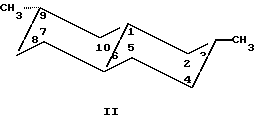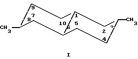 Из спектров ЯМР 13С следует, что 4 неидентифицированных изомера также имеют транс-сочленение колец и экваториальное положение метальных групп и отличаются от продуктов I и II только положением метальных групп.