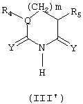 R4 и R5 представляют Н или фенил, за исключением того, что R1 представляет Н; R2 представляет Н, Сl или СF3; R3, R4 и R5 – Н; Y = O и Q – CH, если m=0 и n=1, и также за исключением того, что R1 представляет Н; R2 представляет ОСН3; R3, R4 и R5 – H; Y – O; Q – CH, если m=0 и n=2.