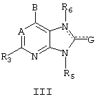 при условии, что, если G является атомом кислорода, серы, NH или NCH3, то он присоединяется двойной связью к пятичленному кольцу формулы III, и далее при условии, что R6 отсутствует, если атом азота, с которым он связан, присоединяется двойной связью к смежному атому углерода в кольце.