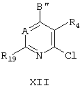 А – N, СН или ССН3, причем, если А является N, то В” и R4 имеют значения, указанные выше для В и R4, а если А представляет собой СН или ССН3, то В” означает -NR1R2, -OCHR1R2 и R4 является электронодефицитной группой, такой, как NO2, -COO(C1-C4 алкил), -С(=O)СН3, -СООН или CN;