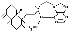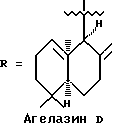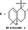 Предпосылки изобретенияМорские организмы, в особенности мягкие кораллы, губки и оболочечники, производят множество вторичных метаболитов и демонстрируют различную степень биологической активности (Faulkner, D. Nat. Prod. Rep. 1997, 14, 259-302). Эти метаболиты принадлежат к семейству дитерпеновых алкалоидов; в 1984 году Nakamura, H. et al. Tetrahedron lett. 1984, 25, 2989-2992 была опубликована структура четырех агелазинов: ![]() ![]() ![]() ![]() ![]() Мы выделили из губки Raspalia sp. новые цитотоксические дитерпеновые алкалоиды, принадлежащие к семейству агелазинов. Краткое описание изобретения Данное изобретение представляет новые дитерпеновые алкалоиды, имеющие структуру, представленную формулой (I) или формулой (II): ![]() ![]() где R1 представляет либо водород, либо низкомолекулярный алкил, либо низкомолекулярный алканоил; R2 представляет водород либо низкомолекулярный алкил; R3 является либо алкилом, либо циклоалкиловой группой, содержащей один или несколько остатков изопрена, либо монотерпеном, либо гексотерпеном, либо гексотерпеновой или дитерпеновой группой; R4 или R5 представляют собой водород либо низкомолекулярный алкил; R6 является низкомолекулярным алкилом; Х представляет собой F, Сl, Вr или I. В определениях групп в формулах (I) и (II) низкомолекулярный алкил и низкомолекулярный алкильный остаток низкомолекулярного алканоила представляют собой неразветвленную или разветвленную алкильную группу, содержащую от одного до шести атомов углерода, такую как метил, этил, пропил, изопропил, бутил, изобутил, sec-бутил, трет-бутил, пентил, неопентил и гексил. Более точно, данное изобретение относится к Асмарину А и Асмарину В, экстрагированным и выделенным из губки Raspailia sp. Структуры этих соединений показаны ниже: ![]() ![]() Пространственная структура показана для относительной конфигурации в обоих классах. Асмарин А и Асмарин В демонстрируют противоопухолевое действие. В особенности Асмарин А и Асмарин В демонстрируют свое противоопухолевое действие против клеточных культур, взятых из солидных опухолей человека, таких как карцинома легкого человека, карцинома толстой кишки человека, меланома человека, и, подобным же образом, они активны в борьбе с другими линиями опухолевых клеток, например лейкемией и лимфомой. Данное изобретение также предоставляет метод лечения млекопитающего, пораженного злокачественной опухолью, чувствительной к соединению, содержащему вещество формулы (I) либо формулы (II), состоящий в введении терапевтически эффективного количества соединения, имеющего формулу (I) или (II), либо их фармацевтической композиции. В данном изобретении далее описывается фармацевтические композиции, которые содержат в качестве активного ингредиента вещество, имеющее формулу (I) или (II), а также описан процесс их приготовления. Еще одним аспектом данного изобретения является метод получения веществ Асмарин А и Асмарин В, который включает в себя экстрагирование и выделение из губки Raspailia sp. Примеры фармацевтических композиций включают все твердые (таблетки, пилюли, капсулы, гранулы и т.д.) и жидкие (растворы, суспензии, эмульсии) формы с подходящими схемами орального, местного или перентерального введения и они могут включать в себя чистое вещество либо его комбинацию с любым носителем либо другими фармакологически активными веществами. При перантеральном введении данные композиции до