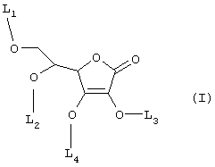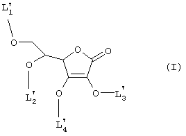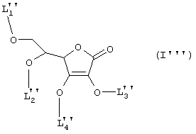 в которой L”1, L”2, L”3 и L”4 означают бензилоксигруппы, атом водорода; причем радикалы L”1 и L”2, кроме того, вместе с остатком аскорбиновой кислоты могут образовывать диоксиметиленовый цикл, замещенный по меньшей мере одной (С1-С6)-алкильной группой, или фенильной группой, или двумя алкильными или фенильными группами, при условии, что по меньшей мере один из радикалов L’1, L’2, L’3 и L’4 означает атом водорода,