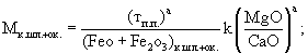 Feобщ/(SiO2+CaO+MgO+Al2O3) (1)