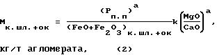 mок. и mк.шл. – массовые доли соответственно окалины и конвертерного шлама в смеси, состоящей из окалины и конвертерного шлама – к.шл.+ок., доли;