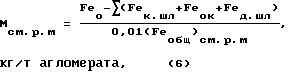 (Feк.шл+Feок+Feд.шл) – количество железа, вносимое в шихту конвертерным и доменным шламами и окалиной, кг/т агломерата;