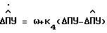 На вход второго интегратора 14 поступает сигнал оценки угловой скорости судна и сигнал невязки оценки отклонения путевого угла от измеренного значения: , (3)где K4 – коэффициент фильтра Калмана, невязка оценки отклонения путевого угла.