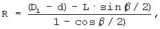 1 мм, а радиус R образующей упомянутой выпуклой поверхности определен по формуле