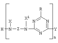 5. Полимерное изделие по п.4, в котором Х и X1 являются одинаковыми или различными и имеют формулу (II), в которой R представляет собой морфолино или октиламин; R1 представляет собой Н или СН3; R2 представляет собой Н; R3 и R4 представляют СН3; Z представляет собой С6Н12; Y представляет собой морфолино, октиламин или