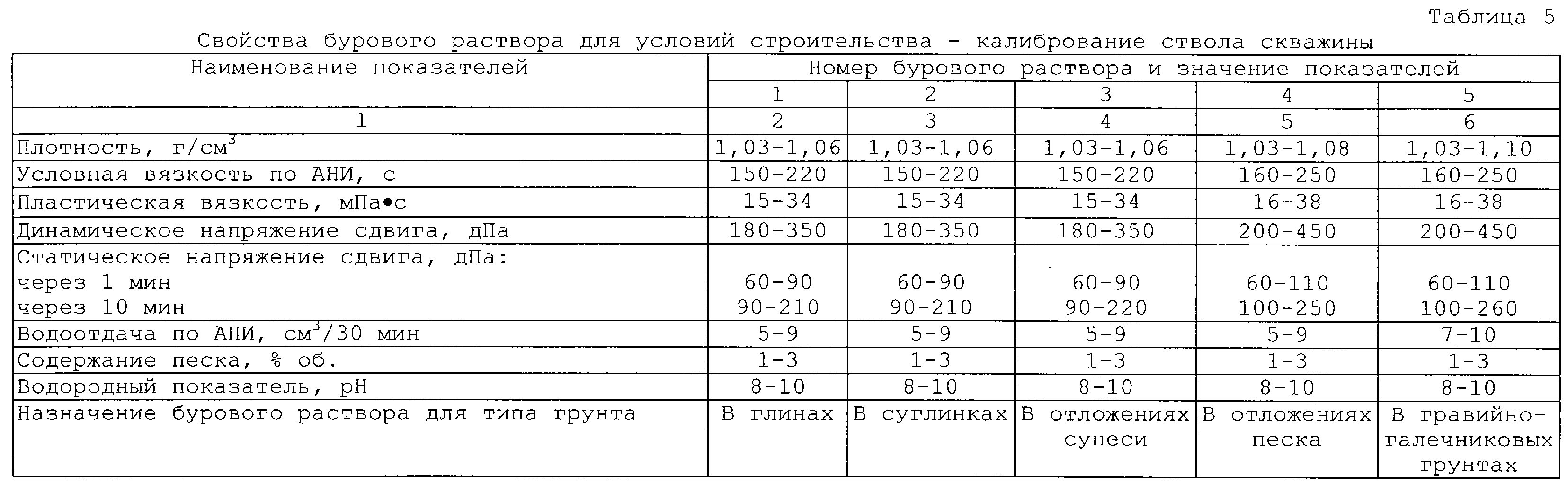 6. Буровой раствор по любому из пп.1-5, отличающийся тем, что при расширении и калибровании скважин длиной более 600 м и диаметром более1200 мм он содержит амфолитный полиэлектролит ГРИНДРИЛ.