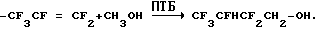 Продукты реакции при комнатной температуре выгружали, подвергали ректификации, анализировали с помощью ГЖХ (газожидкостной хроматографии). Выход тригидротетрафторпропанола (ТФП) HCF2CF2CH2OH приведен в столбце 13 таблицы 1. Получен продукт с содержанием HCF2CF2CH2OH 99.8 мас.%Пример 2 В реактор V=1000 л (1 м3) загружали 390-440 кг метанола, окись кальция (опыт 1- 4 кг, опыты. 2, 3 – по 2,8 кг); загрузку инициатора проводили из мерника в виде растворов в метаноле, который в опытах 2 и 3 содержал добавку тригидротетрафторпропанола (0,8 и 4,2 кг соответственно). Конструкция мерника позволяет осуществлять подачу растворов инициатора порциями на протяжении всего процесса. После удаления из реакционной массы кислорода подавали в реактор тетрафторэтилен до 3,4-6,5 кг/см2 и начинали нагрев до температуры 120oC. После начала падения давления устанавливали постоянную скорость подачи тетрафторэтилена, а корректировку технологических параметров осуществляли температурой. По окончании синтеза реактор охлаждали, продукты реакции передавливали в сборник и подвергали ректификации. Условия проведения опытов 1-3 примера 2 и полученные результаты представлены в табл. 2. Полученный продукт содержал 99,5 мас.% тригидротетрафторпропанола HCF2CF2CH2OH В условиях примера 1 был проведен и синтез гексафторбутанола реакцией гексафторпропилена с метанолом ![]() Пример 3 В 0,25 л автоклав помещали смесь 100 г метанола, 10 г перекиси ди-трет-бутила (ПТБ), 0,8 г окиси кальция и при перемешивании нагнетали до 6,5 кг/см2 гексафторпропилен, после чего нагревали до 120oC. По достижении этой температуры возобновляли подачу гексафторпропилена, поддерживая его на уровне 13-14 кг/см2 (мольное соотношение C2F6 : ПТБ равно 11,6:1) при температуре 130-140oC в течение 4,5 часа. После этого реактор охлаждали до комнатной температуры и из полученной реакционной массы весом 289,5 г выделяли 143,6 г гексафторбутанола, CF3CFHCF2CH2OH. В опыте без добавки окиси кальция вес реакционной массы составил 287,2 г. При альтернативном способе получения гексафторбутанола нагреванием 1 кг метанола с 1 кг гексафторпропилена в присутствии 30 г перекиси бензоила (3 мас.%) в качестве инициатора в течение 4 часов при 100oC и саморазвивающемся давлении получают 675,6 г гексафторбутанола CF3 CFHCF2CH2OH содержание изомера CF3CF(CF2H)CH2OH ~ 5%), т.е. выход целевого продукта (в расчете на исходные компоненты) в 2,1 раза ниже, чем по предлагаемому способу. Рассмотрение представленных в табл. 1, 2 данных позволяет установить определенные закономерности и сделать выводы о путях оптимизации процесса в целом. Для удобства сопоставления результатов, полученных на реакторах различной вместимости в табл. 1 (столбцы 15, 16) приведены расчетные данные по выходу тетрафторпропанола на 1 м3 реакторе. В столбце 17 табл. 1 и столбце 16 табл.2 приведены значения давления тетрафторэтилена, рекомендуемые нами для уменьшения индуцированного разложения инициатора (ПТБ) в процессе нагрева реакционной массы до рабочей температуры. Ограничения по верхнему пределу обусловлены возможным превышением рабочего давления вследствие термического расширения. Из табл. 1 (столбцы 1, 10, 11) видно, что увеличение температуры и концентрации инициатора приводит к увеличению скорости расходования тетрафторэтилена (столбец 14) и оптимальные параметры по этим показателям лежат в пределах 8,3-12,1 мас.% при температуре 130-150oC. В то же время выход те