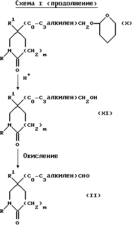 Препаративные примеры с 14 по 16Соединения следующих, сведенных в табл. 9 препаративных примеров, имеющие общую формулу: ![]() получают способом, подобным способу препаративного примера 1, используя в качестве исходных веществ соответствующие ацетонитрильные производные. Препаративные примеры с 17 по 19 Соединения следующих, сведенных в табл. 10 препаративных примеров, имеющие общую формулу; ![]() получают способом, подобным способу препаративного примера 2, используя в качестве исходных веществ соответствующие бутаннитрильные производные (см. препаративные примеры 14-16). Препаративные примеры с 20 по 22 Соединения следующих, сведенных в табл. 11 препаративных примеров, имеющих общую формулу; ![]() получают способом, подобным способу препаративного примера 3, используя в качестве исходных веществ соответствующие бутаноатные производные (см. препаративные примеры 17-19). Подстрочные замечания 1. Реакцию осуществляют при давлении 414 кПа (60 ф/д2) и 50oC. 2. Реакцию осуществляют при 50oC. Препаративные примеры с 23 по 32 Соединения следующих, сведенных в табл. 12 препаративных примеров, имеющие общую формулу: ![]() получают способом, подобным способу препаративного примера 4, используя в качестве исходных веществ соответствующие тетрагидропирановые производные (см. препаративные примеры 7, 12, 44-50 и 52). Препаративные примеры с 33 по 38 Соединения следующих, сведенных в табл. 13 препаративных примеров, имеющие общую формулу; ![]() получают способом, подобным способу препаративного примера 5, используя в качестве исходных веществ соответствующие этанольные производные (см. препаративные примеры 8, 27-30 и 32). Препаративные примеры с 39 по 43 Соединения следующих, сведенных в табл. 14 препаративных примеров, имеющие общую формулу; ![]() получают способом, подобным способу препаративного примера 6, используя в качестве исходных веществ соответствующие этанольные производные (см. препаративные примеры 23-26 и 31). Препаративные примеры с 44 по 52 Соединения следующих, сведенных в табл. 15 препаративных примеров, имеющие общую формулу; ![]() получают способом, подобным способу препаративного примера 7, используя в качестве исходных веществ соответствующие производные 2(1Н)-пиперидона (см. препаративные примеры 3, 20, 21 и 22) и алкилбромиды. Подстрочное замечание 1. К реакционной смеси добавляют иодид калия, и затем смесь нагревают при 50oC в течение 4 часов. Препаративный пример 53 1-Дифенилметилазетидин-3-ол Раствор бензгидриламина (200 мл, 1,16 моль) и эпихлоргидрина (186 мл, 1 мол. экв. ) в метаноле (600 мл) перемешивают при комнатной температуре в течение 5 суток и затем нагревают при 40oC в течение 2 суток. Затем удаляют растворитель при пониженном давлении, остаток растворяют в изопропиловом спирте (500 мл), и раствор кипятят с обратным холодильником в течение 6 часов. Раствор охлаждают до комнатной температуры, и отфильтровывают выпавший осадок. Твердое вещество обрабатывают дихлорметаном (400 мл) и насыщенным водным раствором бикарбоната натрия (500 мл). Водную фазу экстрагируют дихлорметаном (2х400 мл), и объединенные органические фазы сушат над сульфатом магния. Затем раствор фильтруют, и из фильтрата при пониженном давлении удаляют растворитель. Получают названное в заголовке соединение (86 г) в виде твердого кристаллического вещества. 1H ЯМР (CDCl3): = 1,8 – 2,3 (с, ш, 1Н), 2,85 – 2,9 (м, 2Н), 3,5 – 3,55 (м, 2Н), 4,35 (с, 1Н), 4,4 – 4,5 (м