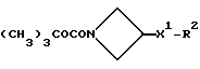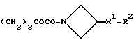 Препаративный пример 61Дигидрохлорид N-(2-метоксиэтил)-N-метилкарбамоилазетидина К раствору соединения препаративного примера 60 (473 мг, 1,4 ммоль) в дихлорметане (5 мл), при 0oC и в атмосфере азота, по каплям добавляют альфа-хлорэтилхлорформиат (0,22 мл, 1,1 мол. экв.). Через 20 минут добавляют другую порцию альфа-хлорэтилхлорформиата (0,1 мл, 0,5 мол. экв.), и реакционной смеси дают возможность нагреваться до комнатной температуры в течение 20 минут. После этого растворитель удаляют при пониженном давлении, остаток растворяют в метаноле (7,5 мл) и добавляют карбонат калия (620 мг, 3 мол. экв. ). Затем смесь кипятят с обратным холодильником в течение 1 часа. Реакционную смесь охлаждают до комнатной температуры, фильтруют, и подкисляют фильтрат до pH 3, используя эфирный раствор HCl. Твердое вещество удаляют фильтрацией. Растворитель из фильтрата удаляют при пониженном давлении, и получают смолу, которую промывают несколько раз диэтиловым эфиром и сушат при пониженном давлении. Получают названное в заголовке соединение как сырой продукт (0,35 г), который используют непосредственно. Препаративные примеры с 62 по 64 Соединения следующих, сведенных в табл. 16 препаративных примеров, имеющие общую формулу; ![]() получают способом, подобным способу препаративного примера 59, используя в качестве исходных веществ 1-дифенилметилазетидин-3-карбоновую кислоту и соответствующий амин. Препаративные примеры с 65 по 68 Соединения следующих, сведенных в табл. 17 препаративных примеров, имеющих общую формулу: ![]() получают способом, подобным способу препаративного примера 61, используя в качестве исходных веществ соответствующие азетидины (см. препаративные примеры 62-64 и 105). Подстрочные примечания 1. Сырой продукт используют непосредственно на следующей стадии. 2. Используют только 1,05 мол. экв. альфа-хлорэтилхлорформиата, и при обработке карбонат калия не добавляют. Препаративный пример 69 1-(трет-Бутоксикарбонил)-3-(3-гидроксипиперидил)азетидин Смесь 1-(трет-бутоксикарбонил)-3-метансульфонилоксиазетидина (см. публикацию заявки на международный патент ВОИС93/19059) (1,5 г, 4,78 ммоль) и 3-гидроксипиперидина (1,9 г, 4 мол. экв.) греют при 110oC в течение 16 часов. Смесь охлаждают до комнатной температуры и распределяют между этилацетатом (100 мл) и 5% водным раствором бикарбоната натрия (100 мл). Слои разделяют, и водную фазу экстрагируют другой порцией этилацетата (100 мл). Объединенные органические слои сушат над безводным сульфатом магния. Раствор фильтруют, растворитель из фильтрата удаляют при пониженном давлении, и сырой продукт очищают колоночной хроматографией, используя силикагель, элюируя метанолом с дихлорметаном (1 : 9, по объему). Получают названное в заголовке соединение (1,4 г). ТСХ Rf = 0,3 (диоксид кремния, метанол : дихлорметан 1 : 9, по объему). 1H ЯМР (CDCl3): = 1,45 (с, 9Н), 1,5 – 1,85 (м, 6Н), 2,15 – 2,45 (м, 4Н), 3,05 – 3,15 (м, 1Н), 3,25 – 3,95 (м, 4Н) ppm.