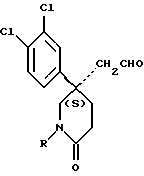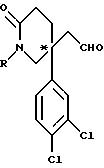 Препаративный пример 65-(3,4-Дихлорфенил)-5-формилметил-2(1Н)-пиперидон К раствору оксалилхлорида (1,6 мл, 1,1 мол. экв.) в сухом дихлорметане (200 мл) при -78oC добавляют по каплям сухой диметилсульфоксид (3,0 мл, 2,4 мол. экв.), и раствор перемешивают в течение 1 часа. Затем добавляют по каплям, в течение 15 минут, раствор соединения препаративного примера 4 (5 г) в смеси дихлорметана (100 мл) и сухого диметилсульфоксида (10 мл), и смесь перемешивают при -78oC в течение 1 часа. Затем добавляют триэтиламин (12 мл, 5 мол. экв.), и смеси дают возможность нагреваться до комнатной температуры в течение 4 часов. Добавляют воду (25 мл), и смесь экстрагируют дихлорметаном (3х100 мл). Объединенные органические слои сушат над сульфатом магния, фильтруют, и удаляют растворитель при пониженном давлении. Получают смолу, которую хроматографируют, используя силикагель, элюируя с градиентом растворителя метанола с дихлорметаном (от 1 : 49 до 1 : 5, по объему), и получают названное соединение (1,09 г). 1H ЯМР (CDCl3): = 2,05 – 2,2 (м, 2Н), 2,35 – 2,5 (м, 1Н), 2,7 – 2,75 (м, 1Н), 2,95 – 3,0 (м, 1Н), 3,45 – 3,6 (м, 2Н), 3,85 – 3,9 (м, 1Н), 6,0 (с, ш, 1Н), 7,2 – 7,45 (м, 3Н), 9,5 (м, 1Н) ppm.