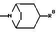 Препаративный пример 136Гидрохлорид эндо-3-ацетокси-8-азабицикло [3,2,1] октана К раствору соединения препаративного примера 135 (3,8 г, 1 мол. экв.) в сухом 1,2-дихлорэтане (40 мл), при 0oC и в атмосфере азота, добавляют хлорэтилхлорформиат (2,37 мл, 1 мол. экв.), и реакционную смесь перемешивают в течение 30 минут. Затем удаляют растворитель при пониженном давлении, и остаток растворяют в метаноле (50 мл) и кипятят с обратным холодильником в течение 1 часа. Затем удаляют растворитель при пониженном давлении, и полученную в результате смолу обрабатывают диэтиловым эфиром (10 мл) и этилацетатом (5 мл), и получают названное в заголовке соединение в виде желтого порошка (3,7 г).