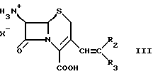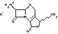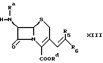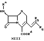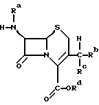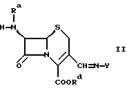 Объектом данного изобретения являются новые промежуточные соединения при получении цефалоспорина. В частности, объектом изобретения является производное цефалоспорина формулы ![]() в которой либо ) Ra обозначает водород или силильную группу; Rb обозначает группу формулы -ORe, в которой Re обозначает водород или низший алкил; a Rc и Rd совместно обозначают связь; или ) Ra и Rd обозначают водород или силильную группу; Rb и Rc совместно обозначают иминогруппу формулы = N-Y, где Y обозначает арил, в частности фенил; или ) Rd обозначает водород или силильную группу; Ra обозначает водород, если Rd обозначает водород; либо Ra обозначает водород или силильную группу, если Rd обозначает силильную группу; a Rb и Rc совместно обозначают оксогруппу; а силильная группа обозначает три(низш.)алкилсилильную группу;в свободной форме или в форме соли. Кроме того, Y может обозначать алкил или гетероциклил. В одном частном аспекте объектом изобретения является соединение формулы ![]() в которой X– обозначает анион неорганической или органической кислоты, a R1 обозначает водород или (низш.)алкильную группу, предпочтительно водород. Предпочтительным соединением формулы I является соединение, выбранное из группы, состоящей из гидрохлорида 6-амино-5a, 6-дигидро-3-гидрокси-3Н, 7H-ацето [2,1- b]фуро[3,4-d] [1,3]тиазин-1,7(4H)-диона, толуолсульфоната 6- амино-5a,6-дигидро-3-гидрокси-3Н,7H-ацето [2,1-b]фуро[3,4-d][1,3]тиазин-1,7(4H)-диона, гидрохлорида 6-амино-5a, 6-дигидро-3-метокси-3Н, 7H-ацето [2,1-b] фуро[3,4-d] [1,3]тиазин-1,7(4H)-диона и толуолсульфоната 6-амино-5а, 6-дигидро-3-метокси-3Н,7H- ацето[2,1-b]фуpo[3,4-d] [1,3]тиазин-1,7(4H)-диона. В другом частном аспекте объектом изобретения является соединение формулы ![]() в которой Ra и Rd обозначают водород или силильную группу. В следующем частном аспекте объектом изобретения является соединение формулы ![]() в которой Y, Ra и Rd имеют значения, определенные для формулы Ia, в свободной форме или в форме соли. Предпочтительное соединение формулы II представляет собой 7-амино-3-(N-фенилимино)метил-3-цефем-4-карбоновую кислоту. Алкил, арил или гетероциклил в значении Y включают незамещенный алкил, арил или гетероциклил; либо замещенные амино-, диалкиламино-, гидрокси-, алкоксигруппой, алкилом, арилом, нитрогруппой, галогеном, карбалкокси- или уреидогруппой алкил, арил или гетероциклил. Y обозначает предпочтительно трет.-бутил, фенил, нафтил или пиримидинил. Если не указано иное, то алкил включает алкильную группу, имеющую от 1 до 22, например от 1 до 12, в частности от 1 до 8 атомов углерода, предпочтительно низший алкил, такой как (C1-4)алкил. Алкильная группа может быть незамещенной или может быть замещена группами, инертными при соответствующих реакционных условиях. Силильная группа предпочтительно является силильной защитной группой и включает обычную силильную защитную группу, такую как триалкилсилильная группа, например триметилсилильную группу. Арильная группа включает арил, имеющий от 6 до 18 атомов углерода, предпочтительно фенил, нафтил. Арильная группа может быть незамещенной или может быть замещена группами, инертными при соответствующих реакционных условиях. Гетероциклил включает гетероциклические группы, указанные ниже для значений R5 и R6. Гетероциклическая группа может быть незамещенной или может быть замещена группами, инертными при соответствующих реакционных условиях. Соединение формулы Ia, в ко