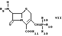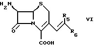 Известен способ получения соединений формулы VI. Однако соединения формулы VI исходя из существующего уровня техники могут быть получены только с помощью сложной технологии защитных групп в несколько реакционных стадий. Например, для получения 3-винилцефалоспоринов существуют, в частности, два способа, основанных на реакции Виттига или Хорнера: