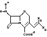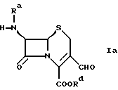 Соединение формулы Iа, в которой Ra и Rd обозначают водород, как ни странно, достаточно стабильно при выделении из водного раствора; если это желательно, оно может быть превращено в бис(силил)соединение формулы Iа, в которой Ra и Rd обозначают силильную группу, путем добавления силилирующего агента. Соединение формулы I, в которой R1 обозначает силильную группу, является стабильным и может быть далее подвергнуто реакции в растворе, если это желательно. Соединения формулы I и формулы Iа таким образом показаны для применения при получении антибиотиков, например, путем ацилирования по аминогруппе в положении 7 или путем реакции альдегидной группы в положении 3 с реагентом, взаимодействующим с альдегидом (далее альдегидный реагент). Эти реакции могут проводиться общепринятым способом.