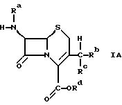 (57) Реферат: Изобретение относится к промежуточному соединению цефалоспоринов формулы IA, приведенной в описании, в которой либо ) Ra обозначает водород или силильную группу; Rb обозначает группу формулы -ORe, в которой Re обозначает водород или низший алкил, a Rc и Rd совместно обозначают связь; либо ) Rd и Ra обозначают водород или силильную группу, а Rd и Rc совместно обозначают иминогруппу формулы =N-Y, в которой Y обозначает фенил, либо Y) Rd обозначает водород или силильную группу; Ra обозначает водород, если Rd обозначает водород, либо Ra обозначает водород или силильную группу, если Rd обозначает силильную группу, а Rb и Rc совместно обозначают оксогруппу, а силильная группа обозначает три(низш)алкилсилильную группу в свободной форме или в форме соли. Способ получения цефалоспорина формулы VI, приведенной в описании, осуществляют путем взаимодействия соединения IA с соединением XI или XII и получают соединение XIII, которое десилилируют. Технический результат – получение нового соединения формулы IA. 2 с. и 6 з.п. ф-лы.